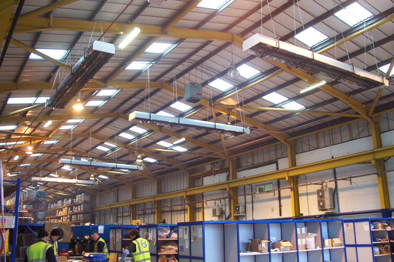The project brief here was simple; to install heating that only effected the work station areas rather than the storage areas of the warehouse. We installed gas powered overhead radiant heating to effectively heat the work stations and provide the needed heating levels.
